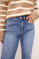 The medium wash is endlessly versatile—easy to dress down with a slouchy sweater or elevate with a chic blouse and heels. Subtle distressed details and a raw hem finish give just the right amount of edge, keeping these jeans feeling fresh and on-trend without sacrificing wearability.