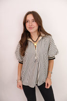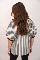 Sporty Quarter-Zip Puff Sleeve Top - Black Stripe