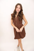Effortless, chic, and made for your busy days—this zip-front sleeveless mini dress is a new autumn staple! The structured collar and front zipper add a sporty-polished touch, while the cinched waist and mini length keep it feminine and flattering. Bonus? Pockets for the girl on the go.