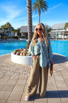This is the kind of top you throw on at the beach and immediately feel put together. The airy, flowy fit paired with that soft blue and olive print gives it such an effortless coastal vibe. It’s lightweight, easy, and just elevated enough to take you from a casual day out to dinner by the water.