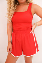 Say hello to your new go-to for sporty chic: the Varsity Pleated Athletic Romper. This one-piece wonder combines the ease of a romper with the style of a tennis skirt - the pleated side panels add movement and flair. Designed with a fitted tank-style top and a stretchy, high-rise waistband, it flatters in all the right places while keeping things comfy from tailgates to travel days.