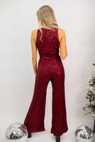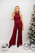 Capture the spotlight in this Burgundy Sequin Jumpsuit, and take glamour to the next level! Featuring a fitted bust and hips with wide legs, the allover sequins will have you feeling stunning as you celebrate the holiday season. Be the life of the party!