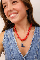 Ole Miss scarf necklace, gameday accessories for women, SEC team jewelry, gameday outfit ideas, boutique team accessories, Ole Miss charm necklace, custom fan gear, cute gameday necklace