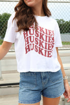 BEST SELLER! Gear up for gameday in our favorite mom crop tee! The soft wash and exclusive design make this tee an absolute must-have for cheering on your favorite team this season!