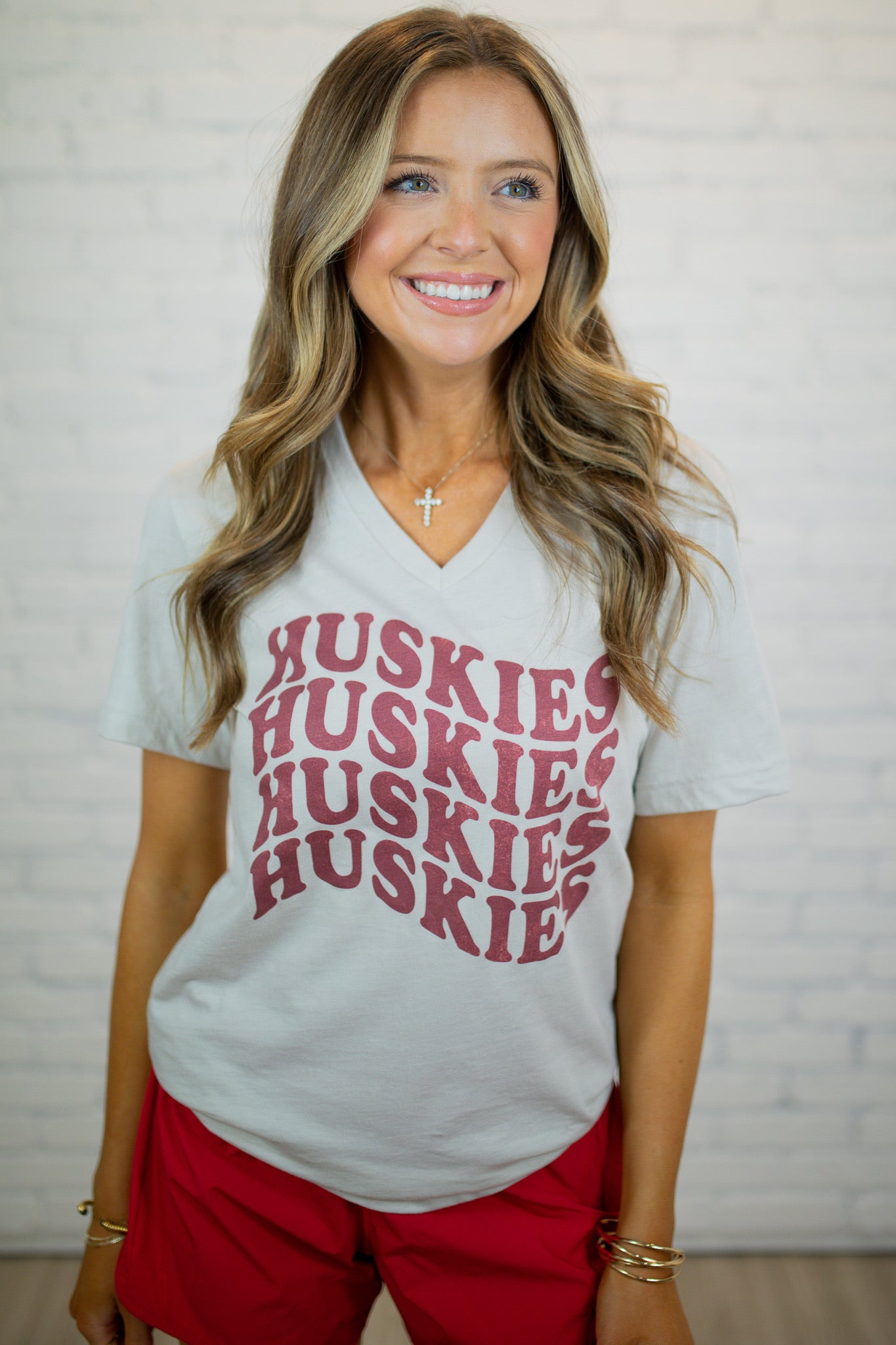 BEST SELLER! Gear up for gameday in our favorite v-neck tee! The soft wash and exclusive design make this tee an absolute must-have for cheering on your favorite team this season!