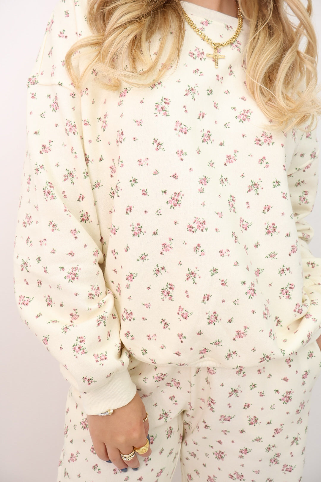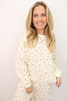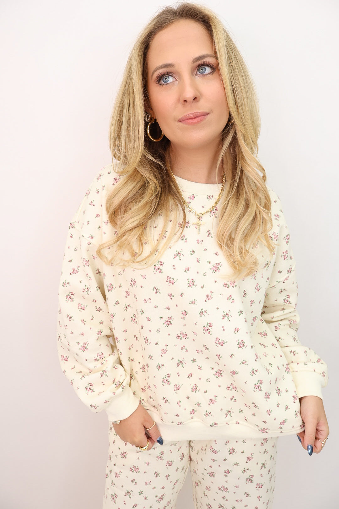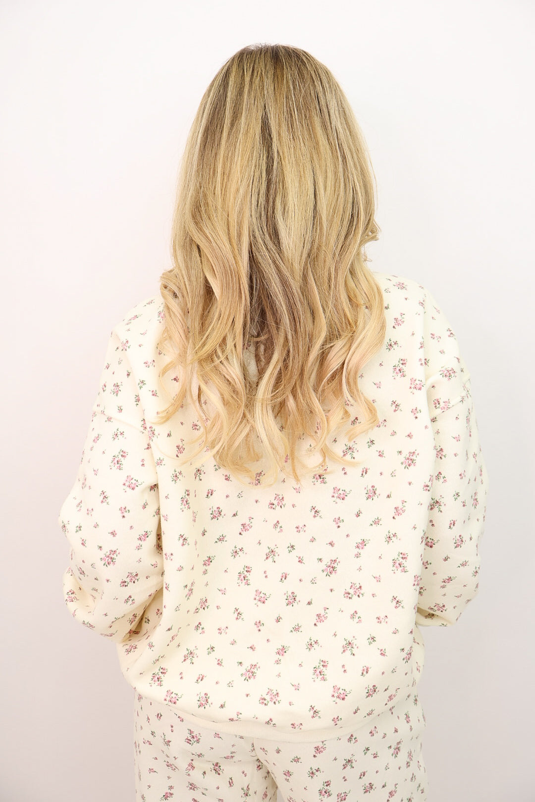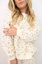Our Cream Pink Floral Hoodie and Jogger Set is the softest thing you’ll put on this season — a matching top and bottom made for slow mornings, movie nights, or just feeling cute around the house. The creamy base is covered in a dainty pink floral print that gives total vintage vibes, while the relaxed fit and elastic waist keep it comfy all day long.