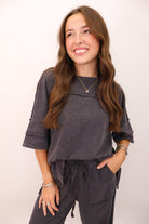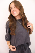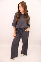 Made for lounging but totally cute for leaving the house, this charcoal wide-leg set is the ultimate balance of comfort and style. The oversized fit, raw seam detailing, and mineral-wash finish give it that lived-in vibe we love. Bonus points for how easy it is to mix and match with your other fall faves!