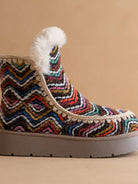 cozy winter booties, colorful woven boots, faux fur ankle booties, boutique winter shoes, platform cold weather boots, comfy winter booties, women’s slip-on booties, multicolor sweater boots, warm winter fashion boots, mou boot dupe