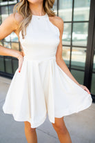 A sophisticated and elegant choice! Crafted from a luxurious fabric, this dress features a high neckline and classic fit and flare silhouette, while the open-back design adds an extra touch of allure. Perfect for brides or any other special occasions! TTS. Our model is wearing a small.