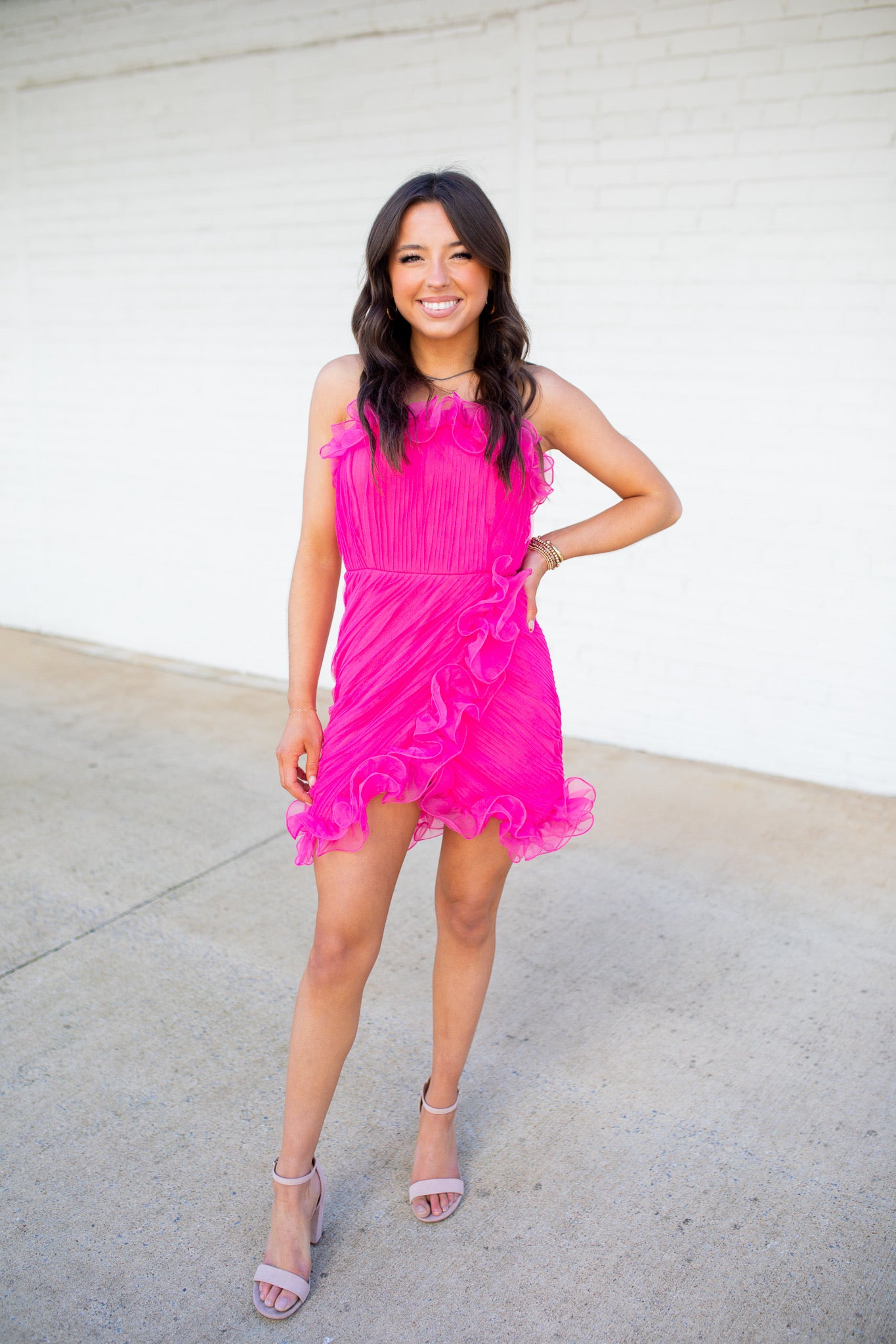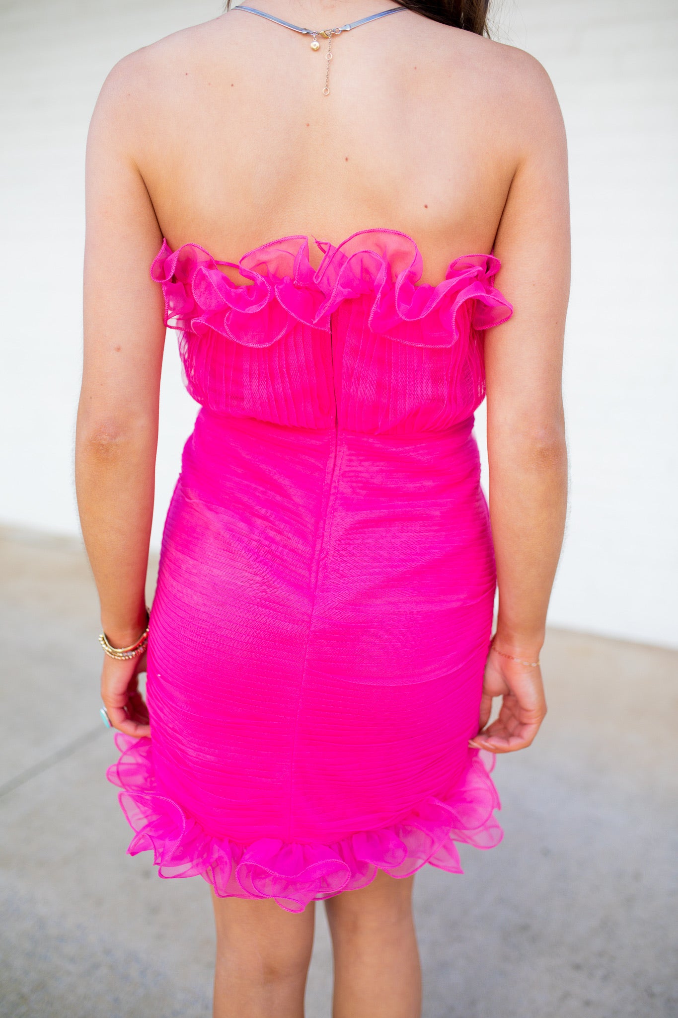Hot Pink Ruffled Strapless Dress