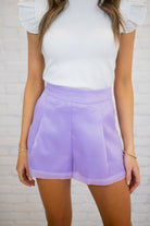 These lavender organza shorts are an elegant and sophisticated statement piece! High waisted and tailored to perfection, you'll love its dressy, luxurious feel. For a timeless look, pair them with a simple white top and heels- perfect for any special occasion!