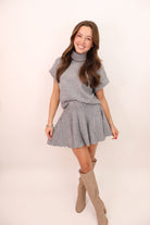 Meet your new fall favorite: this two-piece sweater set that blends comfort with an effortlessly chic vibe! The knit mini skirt features an elastic waistband for an easy, flattering fit, while the matching loose-fit sweater top keeps things cozy without sacrificing style. Perfect for brunch with the girls, game days, or casual date nights—you’ll find yourself reaching for this set on repeat.