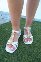 Featuring soft neutral straps and three textured gold starfish details down the center, these instantly give “coastal chic” without feeling costume-y. The crisscross straps keeps them flattering and secure, while the ankle strap adds support for all-day wear.