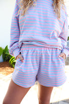 women’s striped lounge set, two piece shorts set, relaxed fit matching set, striped summer outfit, women’s travel outfit, elastic waistband shorts with pockets, casual boutique set, lightweight spring lounge set, travel outfit, spring break travel outfit, spring lounge set