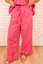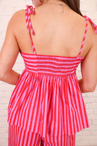 Striped Tie Shoulder Top + Pant Set - Red/Pink