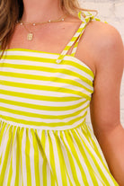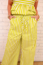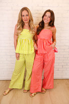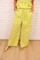Striped Tie Shoulder Top + Pant Set - Lime