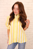 striped puff sleeve top, yellow striped top, boutique tops, women’s casual tops, spring tops, spring striped top