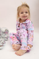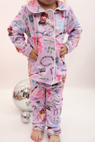 Introducing our Swiftie kids pajamas, the perfect blend of fun and comfort! These pajamas feature a classic button-up top and pants set in a vibrant pink and purple Taylor Swift print. Made with a soft and breathable blend of polyester and spandex, these pajamas are as stylish as they are comfortable. Sleepovers will never be the same!