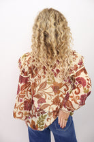 Rich tones and romantic details make this blouse a standout piece for fall! The Burgundy & Rust Floral Ruffle Shoulder Blouse features a warm floral print in shades of deep burgundy, rust, and cream — the kind of palette that instantly feels like autumn. Designed with a relaxed fit and delicate ruffle detailing along the shoulders, it blends femininity with a touch of playful edge.