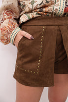 Faux Suede Brown Studded Shorts
