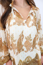 A statement-making top with just the right touch of fall charm — our Mustard Paisley Print Blouse is one you’ll reach for again and again! Featuring a flowy fit and silky fabric that drapes beautifully, this blouse brings a pop of pattern to your everyday rotation. The paisley print mixes warm mustard tones with hints of cream and rust for that effortlessly boho-chic vibe.