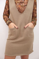 Classic, cozy, and endlessly versatile — our Sweater Jumper Dress is your new fall favorite! Designed in a soft knit with just the right amount of structure, it’s an easy piece to throw on and instantly look put-together. The deep V-neckline and front pockets give it that effortless, modern feel, while the relaxed silhouette keeps it flattering and comfortable. Whether layered over a fitted turtleneck, a floral mesh top, or a basic tee, this one can take you from the pumpkin patch to Thanksgiving dinner in style!