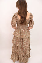 Soft, feminine, and made for fall gatherings — our Mocha Floral Tiered Midi Dress captures that effortlessly elegant look you’ll wear all season long. Designed in a dreamy mocha and cream floral print, this dress features a stretchy smocked bodice for a flattering, comfortable fit that moves with you. The flowy skirt and subtle puff sleeves give it a romantic feel, while the lightweight, fully lined fabric keeps it wearable from daytime outings to Thanksgiving dinner.