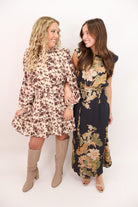 Classic, elegant, and made for moments that matter — this black floral belted midi dress brings an elevated touch to fall dressing. The bold floral pattern feels timeless yet festive, featuring warm autumn hues that pop beautifully against the black background. With its flattering tailored waist and removable belt accented with a gold buckle, this piece cinches in all the right places while keeping a relaxed, comfortable fit through the skirt.