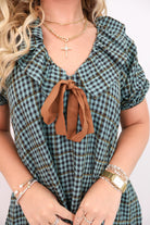 Meet your new fall favorite — this green plaid bow tie dress is equal parts classic and fun, designed to make you feel put-together without even trying. The charming plaid pattern in shades of forest green, black and chocolate brown brings all the cozy fall vibes, while the contrasting brown bow at the neckline adds the sweetest finishing touch.