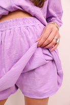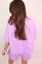 This two-piece set features a relaxed short sleeve top with an effortless drape and matching elastic waistband shorts designed for all-day comfort. The lightweight fabric has a soft, lived-in feel that’s perfect for warmer days, lounging at home, travel, or casual errands. It’s the kind of set you throw on and instantly feel comfortable but still put together.