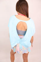 Made from a lightweight, soft knit, this tee drapes beautifully without clinging. The boxy silhouette gives it a relaxed, laid-back feel, making it easy to front tuck, half tuck, or let it flow. The open back design creates a flattering peek of skin and looks so cute layered over a brami, bandeau, or athletic dress — especially for warmer days.