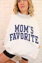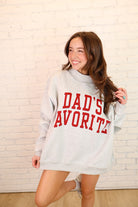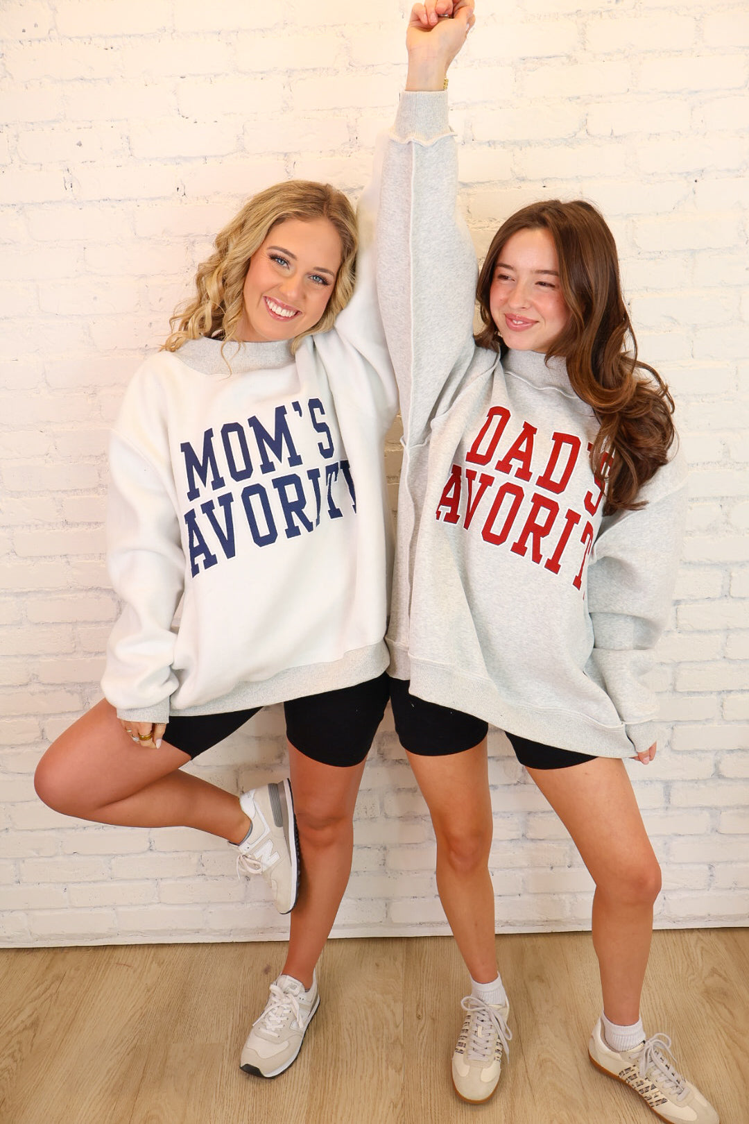 On the front side, the pullover reads “DAD’S FAVORITE” in burgundy, giving it a fun, tongue-in-cheek feel that you'll instantly love. Flip it inside out to reveal the fleece side, which features “MOM’S FAVORITE” in navy — making this truly a two-in-one piece that lets you switch up the vibe depending on the day (or mood 😉).