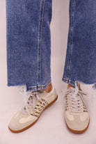 Flying Monkey jeans, high rise flare jeans, cropped flare denim, raw hem jeans, women’s boutique denim, everyday jeans, flattering flare jeans