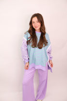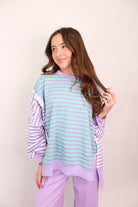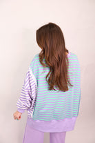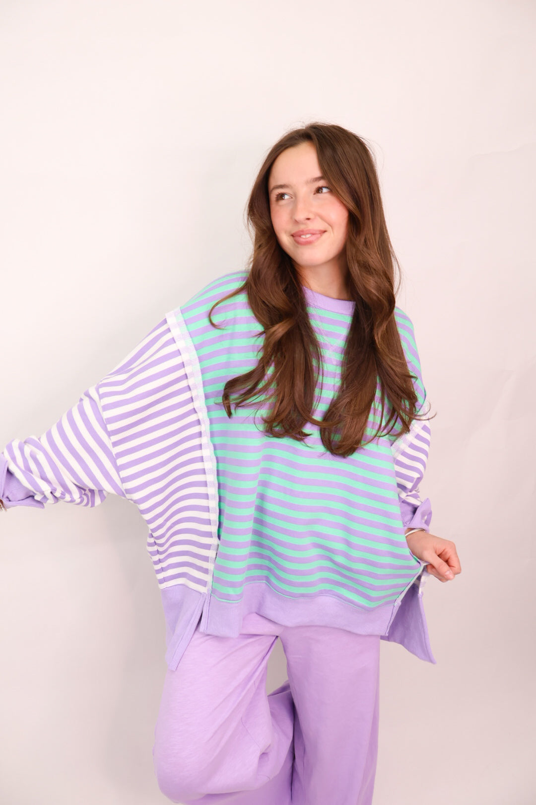 Oversized Everyday Pullover - Lavender- Lavender + Mint Stripe