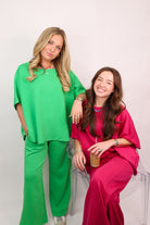Meet the set you’ll reach for on repeat! This easy ribbed two-piece set is the perfect mix of relaxed and put-together — comfy enough for everyday wear, but polished enough to leave the house feeling styled. Designed with a loose, drapey short sleeve top and matching wide leg pants, this set gives you that effortless “threw it on and still look cute” vibe.