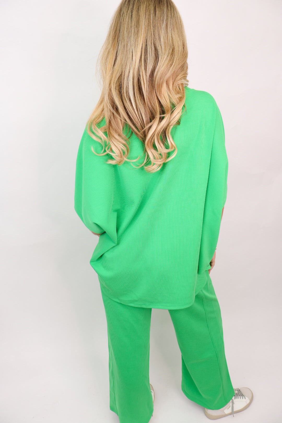 Casual Ribbed Pants Set - Apple Green