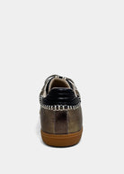 Add instant shine to your step with the Stella Metallic Sneaker — a glam-meets-retro design that elevates every outfit, from laid-back denim to your favorite lounge set. The golden metallic finish catches the light just right, while the quilted black heel, contrast suede stripes, and signature whipstitch detail at the back bring that perfect mix of sporty and statement. It’s bold, comfortable, and made to turn heads — yes, even with sweats.
