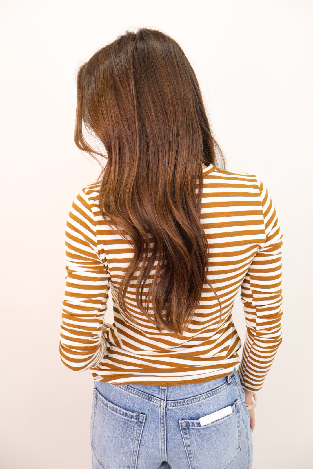 A true staple — the Everyday Striped Long Sleeve Tee is that one piece you’ll reach for again and again! It’s soft, stretchy, and fitted in all the right places, making it perfect for layering or wearing solo. The timeless stripe pattern adds a classic touch to even your most casual looks.