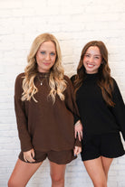 Effortless comfort meets elevated style in this cozy knit sweater set. Designed with an oversized longline sweater and matching high-waisted shorts, this set is all about relaxed luxury. The ultra-soft knit fabric makes it perfect for lounging, travel days, or casual coffee runs — while the rich tones keep it looking put-together. Comes in chocolate brown and black.