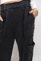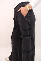 wide leg lounge pants, elastic waist pants women, washed cotton cargo pants, comfy wide leg bottoms, everyday lounge outfit, relaxed fit pants, fall casual wear
