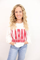 Lightweight, cozy, and full of team spirit — the Alabama Ribbed Pullover is the perfect go-to for those easy game day outfits. Made from a soft, stretchy ribbed fabric, it features an oversized red “ALABAMA” graphic across the front for a bold, classic look. The relaxed fit and lightweight feel make it perfect for layering or wearing solo on warmer fall game days.