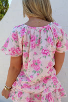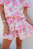 pink floral set, skirt set women, two piece outfit, tiered skirt set, feminine outfit, boutique set, summer set outfit, pink floral summer set