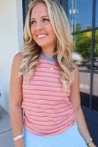 This is one of those tanks you’ll build outfits around all season long! The mix of blue, melon, and soft stripe detailing gives it such a fresh, fun feel while still being super wearable.