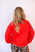 Made from a soft, comfy fleece fabric, this sweatshirt has a standard fit that’s easy to wear on its own or layered. It’s not oversized by default, but it styles beautifully sized up for that relaxed, lived-in look. Available in both a vibrant red and a versatile heather gray, it pairs effortlessly with denim, leggings, or even fun statement pants for a casual but intentional outfit.