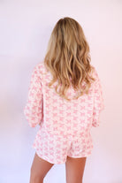 This set is the perfect mix of cozy, cute, and easy — the kind of outfit you’ll grab when you want to feel put together with zero effort. The Pink Floral Waffle Knit Pullover Set features a relaxed Henley-style pullover paired with a matching skort for an everyday look that’s both practical and feminine.