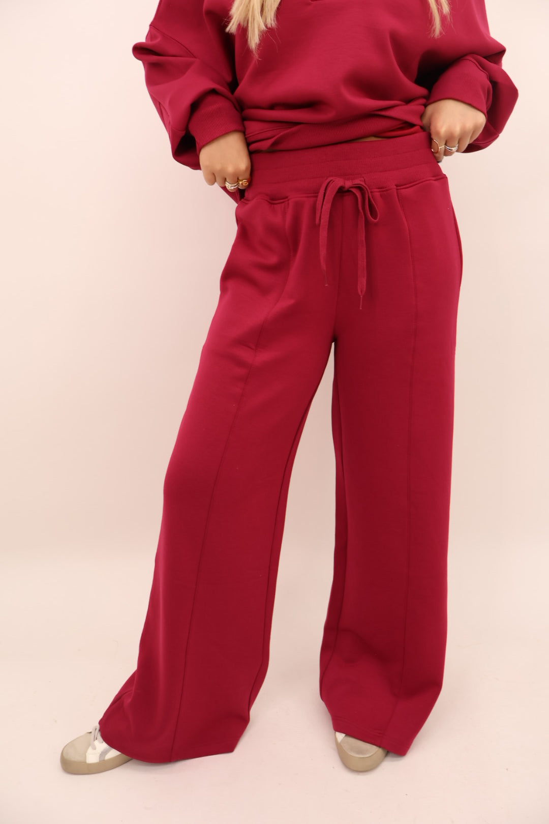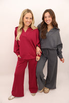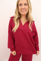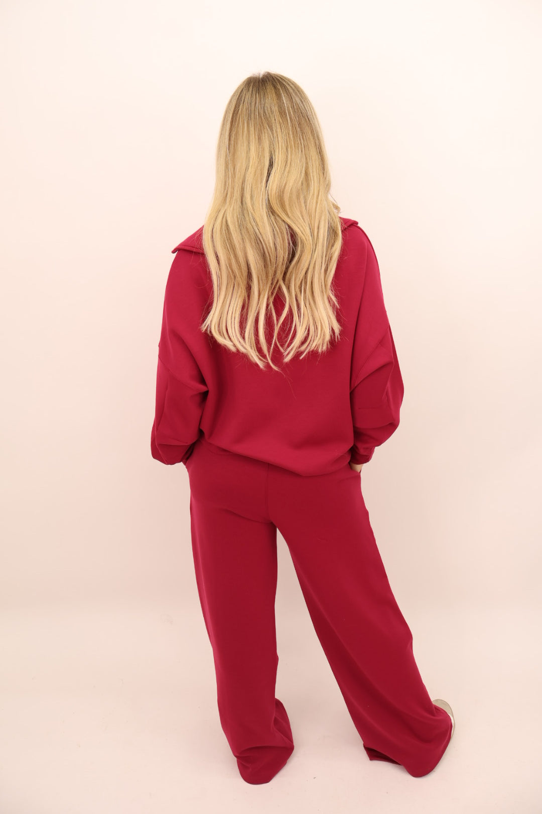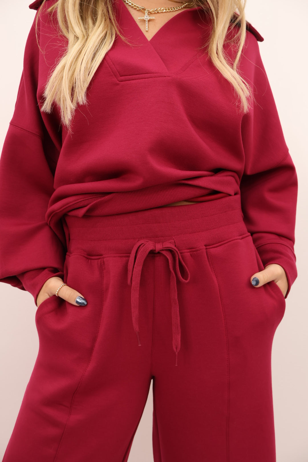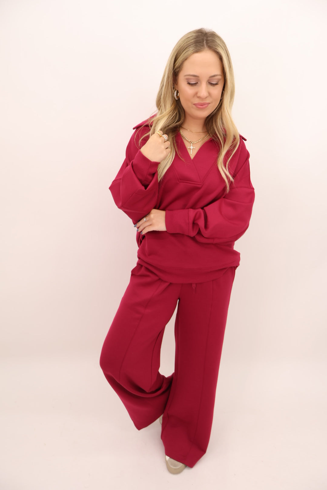 Scuba V-Neck Pullover and Pants Set - Cabernet