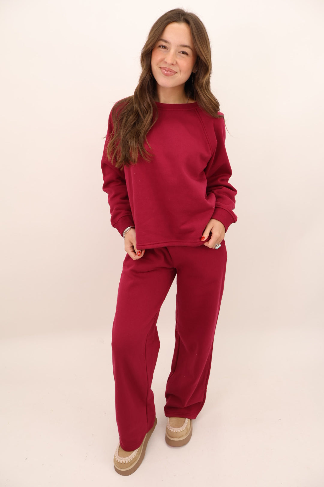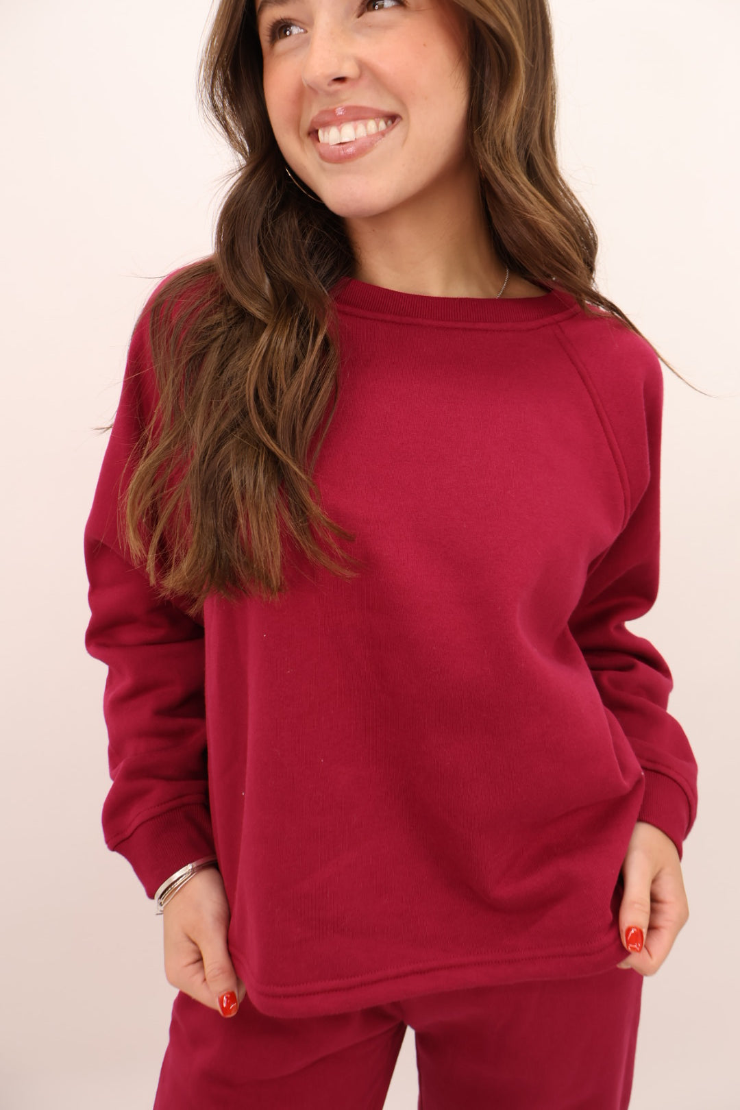 Your new everyday uniform is here — soft, warm, and effortlessly cute. This lounge set features a relaxed crewneck top and full-length pants designed with an elastic waistband and pockets. The fabric drapes beautifully without feeling heavy, making it perfect for school drop-off, work-from-home days, travel days, or just being comfy around the house.