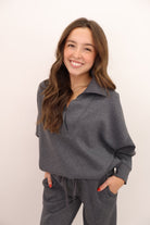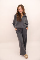 Scuba V-Neck Pullover and Pants Set - Charcoal