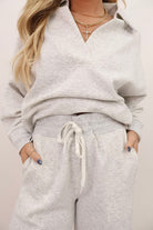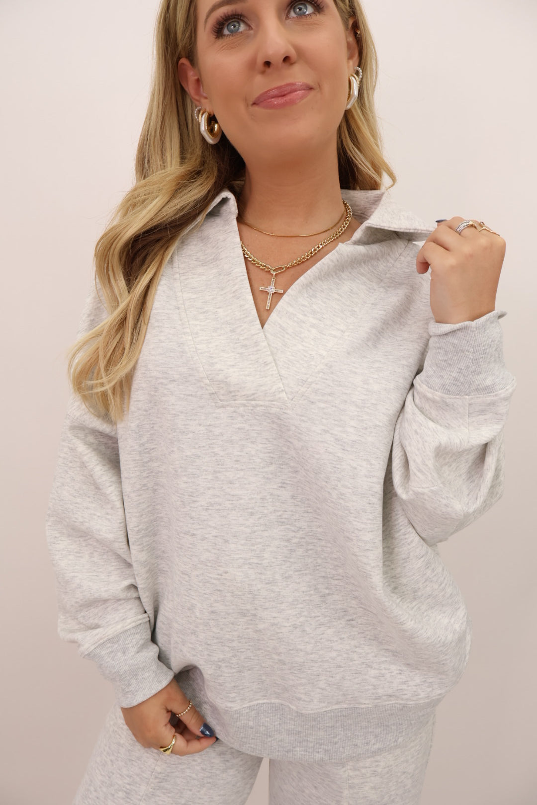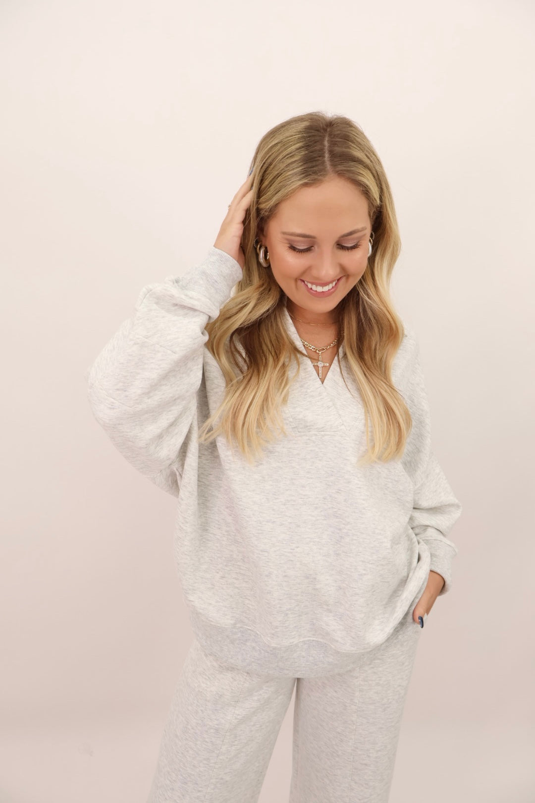 Scuba V-Neck Pullover and Pants Set - Heather Gray