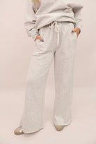 Meet the set you’re never going to want to take off! This unbelievably soft lounge duo was made for slow mornings, holiday movie nights, and every errand in between. The top features a relaxed fit with a chic V-notch neckline that gives it that “put together but still comfy” look you love. The matching pants have a flowy, wide-leg silhouette with an easy elastic waistband + pockets.